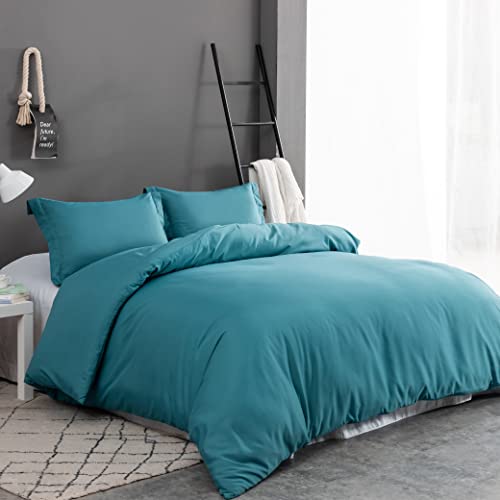 Mohap - Set copripiumino con federe in microfibra spazzolata, non si stira, tinta unita, Blu lago., Doppio