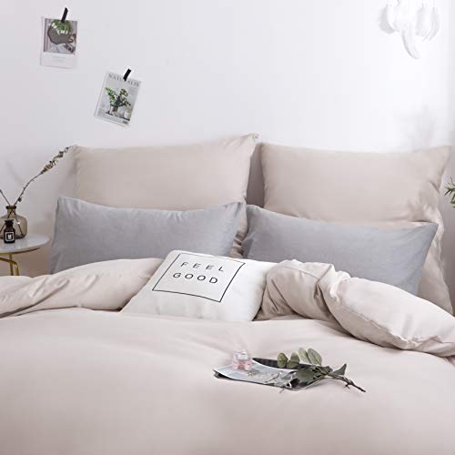Mohap - Set copripiumino con federe in microfibra spazzolata, non si stira, tinta unita, Microfibra, Beige., King