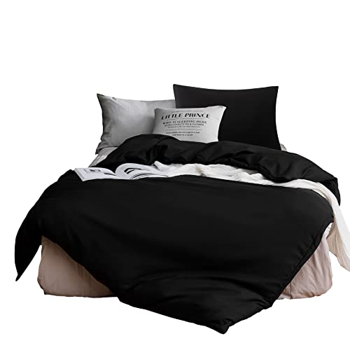 MOHAP Set Copripiumino Matrimoniale in Microfibra - 1 Copripiumino 250x200 Nero in Microfibra + 2 federe 50x80cm Nero