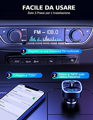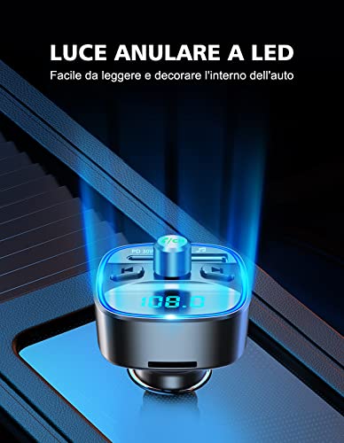 Mohard Trasmettitore FM Bluetooth 5.3 per Auto, PD 30W & QC 3.0 18W Adattatore Bluetooth Auto a Ricarica Rapida con Chiamata Vivavoce, Bluetooth Auto Lettore Musicale MP3