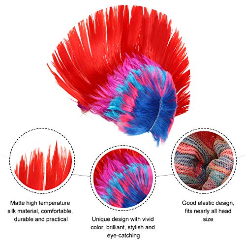 Mohican Parrucca Arcobaleno Punk Rocker Parrucca 80s Strada Punk Parrucca Multi Colore Moicano Parrucche Mohawk Festa Parrucca Costume, Rosso