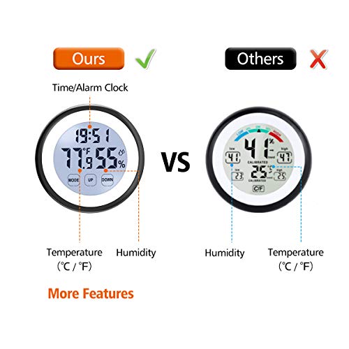 MOHOO Sveglia Termometro Digitale Igrometro Interno/Esterno, Stazione Meteo 90 * 90 * 26.3mm Monitor di umidità, Sospensione Magnetica, Supporto Foro, Sospeso Ufficio, Biblioteca, Magazzino