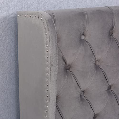 Design stile: progettato in stile Chesterfield, il look è bello e tenue. La testiera più alta (99 cm) offre un supporto per testa e schiena più stabile e confortevole. Il letto imbottito è realizzato in tessuto di velluto, delicato sulla pelle e morbido al tatto, offrendo la perfetta esperienza di sonno. Il grigio rende il letto morbido più resistente allo sporco, tenendo conto sia della praticità che dell'estetica, e l'atmosfera generale di fascia alta non è noiosa.