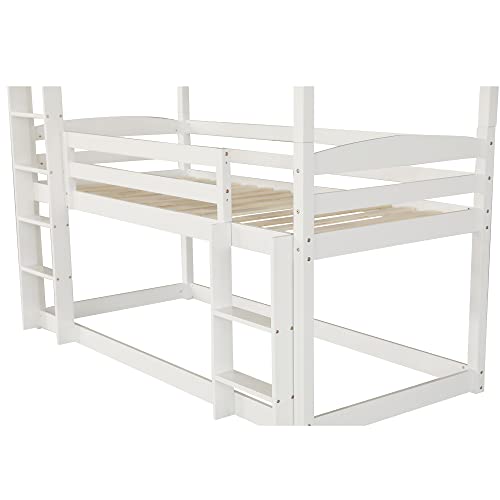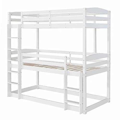 Moimhear Letto a tre piani in legno singolo, per bambini, bianco (90 x 200 cm) (bianco)