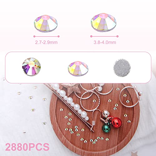 Moinkerin 2880 pezzi Glitter Strass Flat Back Diamante rotondo per cristalli Unghie Decorazione Decorazione Scarpe scarpe Cassa del telefono (non autoadesivo) (SS10(Ø 2.7-2.9mm)/2880pcs, Cristallo AB)