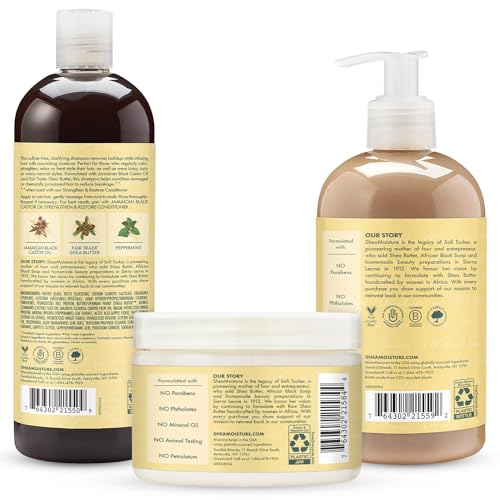 Shea Moisture Jamaican Black Castor Oil Combination Pack - Strengthen, Grow & Restore System - 16.3 oz Shampoo, 13 oz. Conditioner & 16 oz. Leave-In Conditioner
