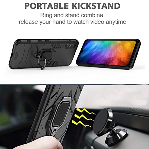 MOJIA Armatura ad Anello Custodia per Xiaomi Redmi 9AT | Redmi 9A, Doppio Shock per Armatura Resistente Cover, TPU Paraurti+PC Retro, Anello Come Supporto. Nero