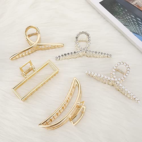 MojiDecor Mollette per Capelli Grandi per Donne, Artiglio per Capelli Flessibile in Metallo Dorato Antiscivolo, 5 Pezzi Mollette per Artigli Mollette per Ragazze Capelli Spessi e Sottili