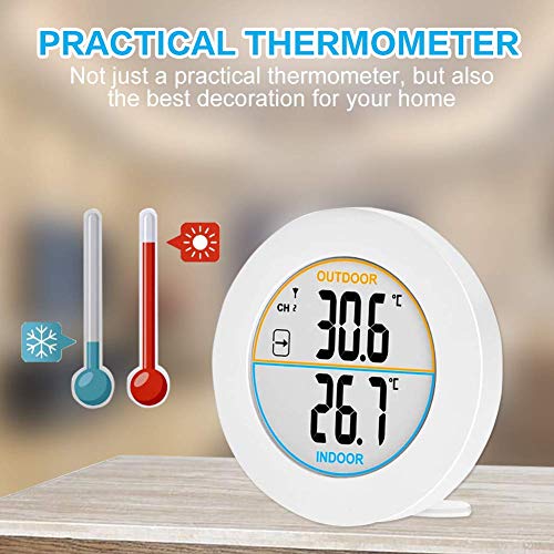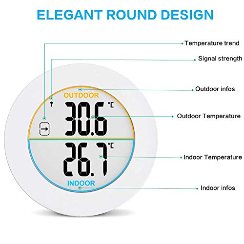 【Elegante Design Rotondo】 Questo termometro digitale per interni ed esterni ha un design rotondo, è molto elegante e maneggevole. Con i pulsanti dietro lo schermo puoi facilmente passare da ℉ / ℃ a max / min.