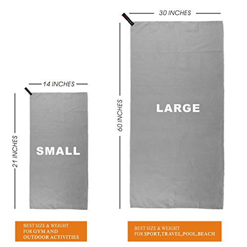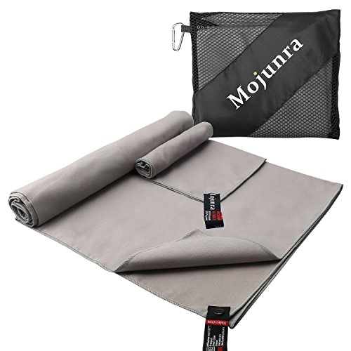 Mojunra Sport in Microfibra & Set di Asciugamani da Viaggio di 2 Teli da Spiaggia Super Assorbenti a Rapida Asciugatura & Campeggio ultra compatto per palestra Yoga(60''x30'' & 21''x14'') (Grigio)