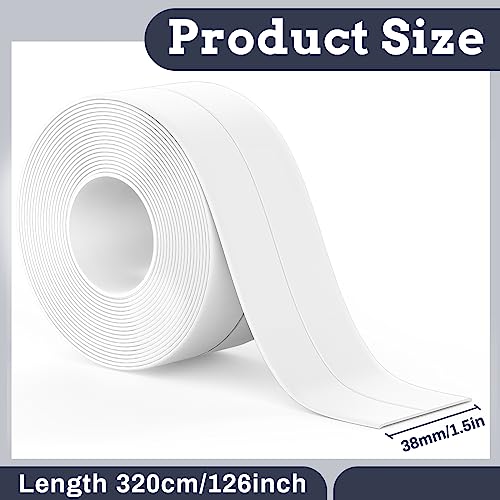 Mokani 2 Rotoli Sigillante Autoadesivo Nastro,Nastro Sigillante Impermeabile, Striscia di Tenuta per Bordo Vasca da Bagno Toilette Cucina (3,8 cm x 3,2 m)
