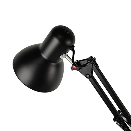 MOKEKA Lampada da Scrivania Attacco E27 Con Metallo Braccio Regolabile interruttore on off Lampada da Tavolo Color Nero
