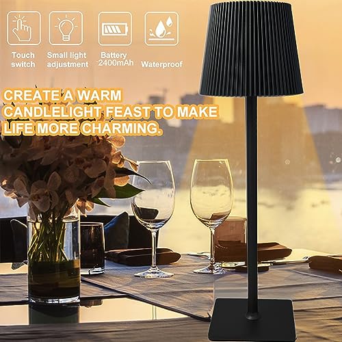 MOKEKA Lampada da Tavolo Senza Fili, Dimmerabile Lampada da Scrivania Ricaricabile con Controllo Touch, 2400mAh, Ideale per Ufficio, ristorante, Studio e casa (Nero)