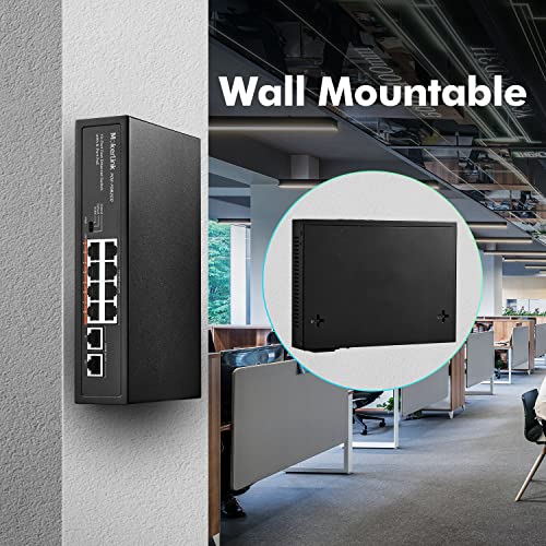Mokerlink 10 Porte Switch Poe, 8 Poe+ 100Mbps, 2 Gigabit Uplink, 96W 802.3af/at, Metal, Fanless, Plug & Play Ethernet Switch