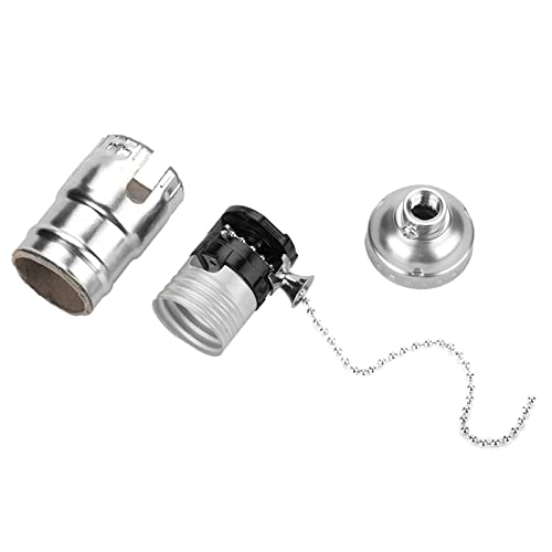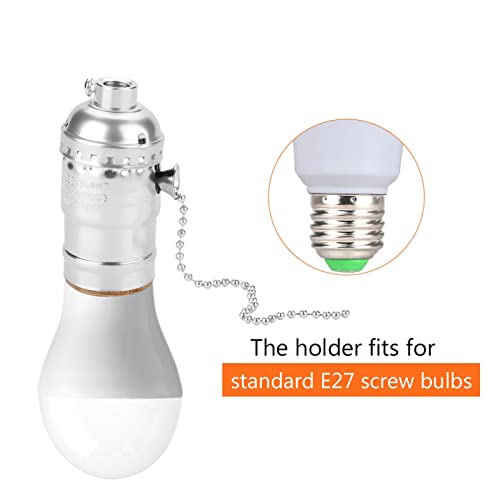 Mokernali Portalampada E27 in Alluminio, Portalampada E27, Portalampada Vintage E27 con Catena di Trazione, 250V, 250W, per Lampada da Tavolo con Base a Vite(Argento)