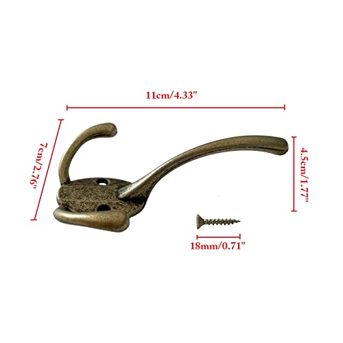 Mokife 5 ganci da parete in bronzo vintage, ganci a tre ganci, ganci in metallo anticato, resistenti per porte, pareti, guardaroba