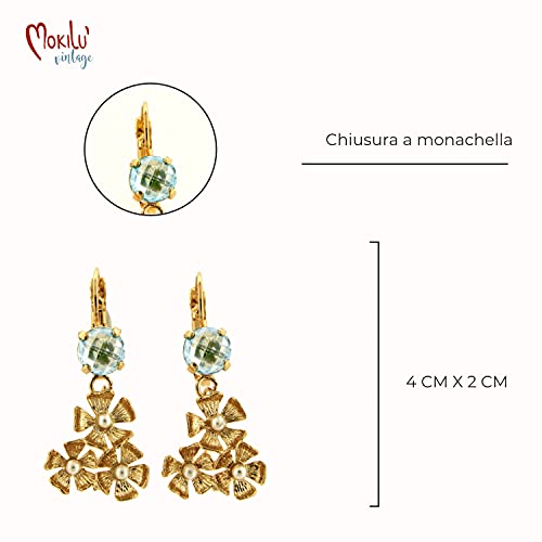 Mokilu' - Gioielli - Orecchini Vintage - Ottone dorato 24 kt - Pietra Celeste - Perle