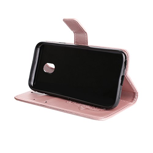 Mokyo Embossed Leather Case for Samsung Galaxy J3 2017/J320 [with Free Stylus Pen],Retro Elegant Flip Wallet PU Leather Case Embossing Tribal Flower Series Design with [Kickstand][Card Slots][Magnetic Closure] Ultrs Thin Book Style Case Cover & Detachable Hand Strap for Samsung Galaxy J3 2017/J320 - Rose Gold
