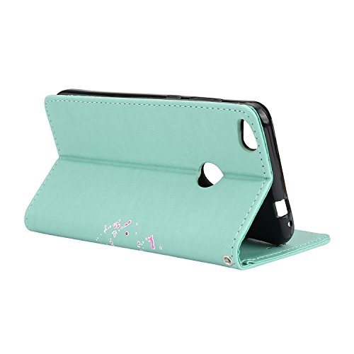 Mokyo Huawei P8 Lite 2017 Case [with Free Stylus Pen],Luxury Glitter Bling Sparkle Pink Flamingo Series Design Flash Powder Faux Leather Flip Wallet Case with [Stand Function][Magnetic Closure][Credit Card Slots] Emobssed Pattern Soft Premium PU Leather Cover Shell for Huawei P8 Lite 2017 - Green