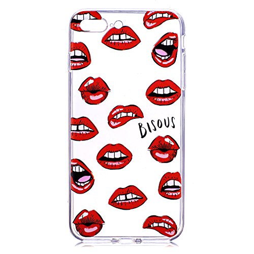Mokyo iPhone 7 Plus/iPhone 8 Plus Case,Transparent Clear Soft TPU Gel Silicone Case Print Cute Cartoon Design with [Free Screen Protector] Ultra Thin Style Jelly Skin Rubber Bumper Shockproof Anti-Scratch Drop Protection Protective Back Cover for iPhone 7 Plus/iPhone 8 Plus - Lips