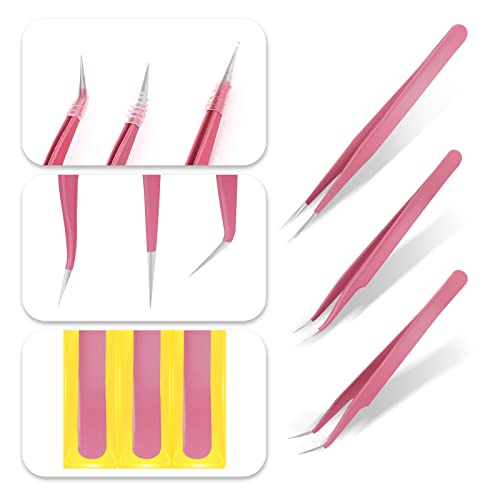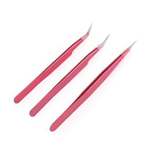 Molain Applicatore per pinzette ciglia 3 pezzi in acciaio rosa punta curva coda di pesce finte supporto clip estensione a Volume Tool Kit e forniture pinze la rimozione