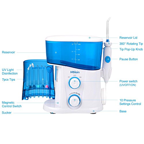 Molain bocca doccia UV disinfettante orale Oral Irrigator upda Ted acqua Flosser con 7 multifunzionale Consigli per la cura di bocca e denti