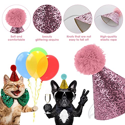 Materiale di qualità: il cappello da compleanno per cani e gatti è realizzato in pelle di qualità, feltro, tessuto lucido e pompon;