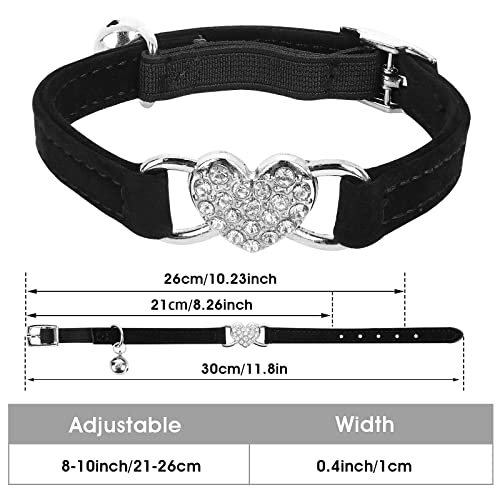 Molain Collare a forma di cuore, regolabile, con cintura di sicurezza e campana con strass, collare per cani e cuccioli di piccola taglia (nero)