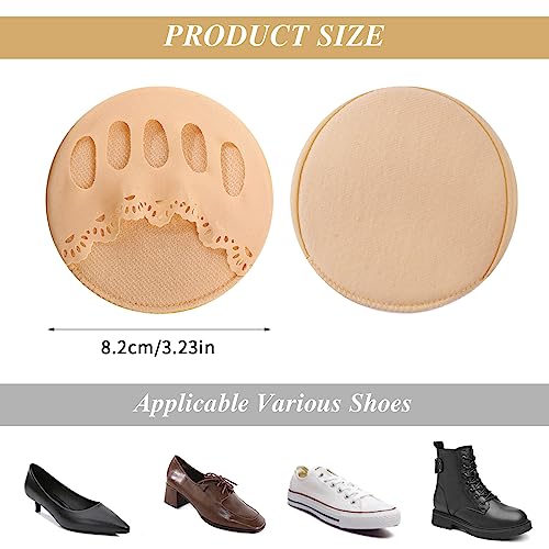 Materiale morbido: i nostri cuscinetti per avampiede sono realizzati in spugna elastica e leggera e poliestere adatti sia per uomini che per donne. La dimensione dei cuscini del piede è 3,35 × 3,23 × 0,24 pollici/8,5 × 8,2 × 0,6 cm. Lo spessore è di circa 0,24 pollici/0,6 cm, fornendo un comfort affidabile tutto il giorno.