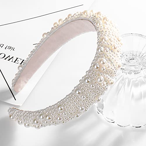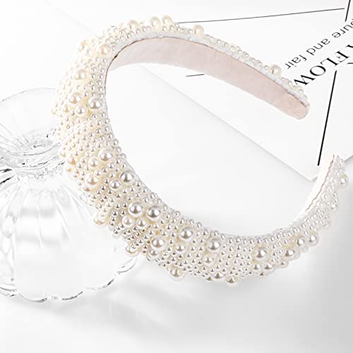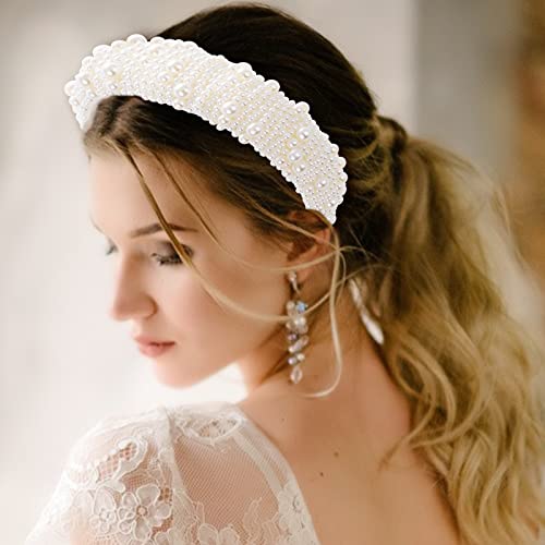 Fasce per capelli da donna: le fasce larghe hanno una superficie liscia e senza punte. La fascia con perle rimane saldamente sulla testa e non danneggia i capelli e non scivola facilmente. La parte inferiore degli accessori per capelli con perle è realizzata in poliestere elastico per un comfort lungo un giorno