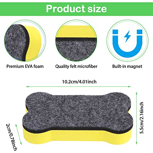 Materiale di qualità: cancellabile per lavagna a forma di osso realizzata in schiuma di alta qualità e fondo in feltro ad alta densità. Ecologico, nessun odore, forte adsorbimento, lavabile e riutilizzabile. Dimensioni: 10,2 x 5,5 x 2 cm, adorabile e funzionale. È ottimo per studenti e bambini in classe, a casa e in ufficio.