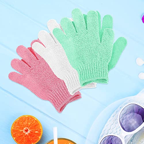 Molain 3 paia di guanti esfolianti per il corpo, scrub da bagno, guanti esfolianti per doccia, spa, massaggio, rimozione cellule morte, accessori da bagno, asciugamani in luffa (rosa, bianco e verde)