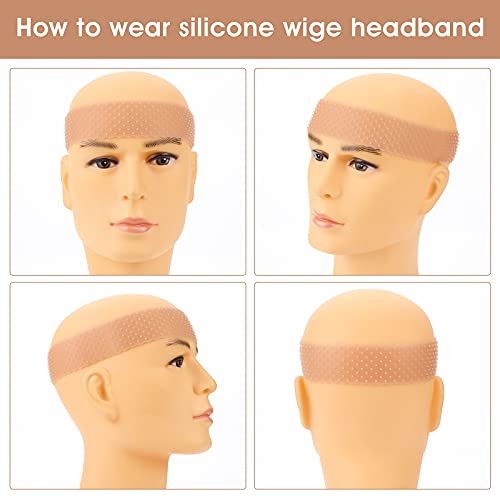 Molain 2 pezzi Fascia per parrucca in silicone antiscivolo, regolabile senza cuciture, fascia elastica per parrucca fascia per capelli a prova di sudore, per donne e uomini