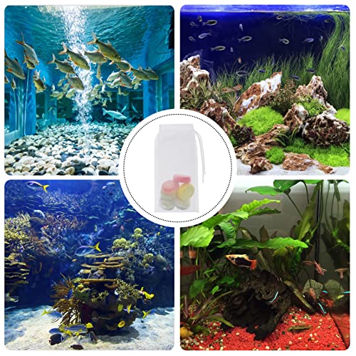 Dimensioni del sacchetto filtro dell'acquario: 20 x 8 cm. Diametro del foro della maglia: circa 0,2 mm, design a rete ultra fine è perfetto per l'uso con carbone attivo, fibra di torba, pellet, bio-ball, zeolite, pellet, ghiaia, anelli in ceramica, rimozione dell'ammoniaca o qualsiasi altro mezzo filtrante per acquari.