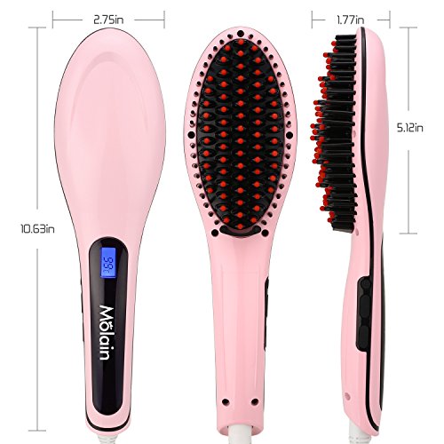 Molain Spazzola Lisciante Raddrizzatore dei Capelli in Ceramica Schermo LCD Spazzola di Massaggio Setosa e Naturale per Liscio Naturale e Istantaneo (Rosa)