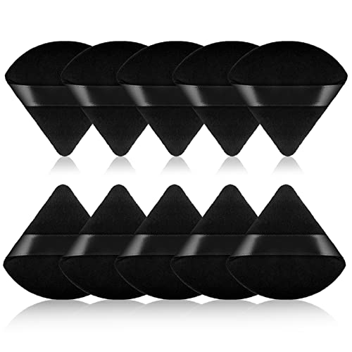 Molain 10 spugnette in puro cotone per cipria da donna, a forma di cuneo, per viso, corpo, con cinturino per contorno, sotto gli occhi e gli angoli, colore nero