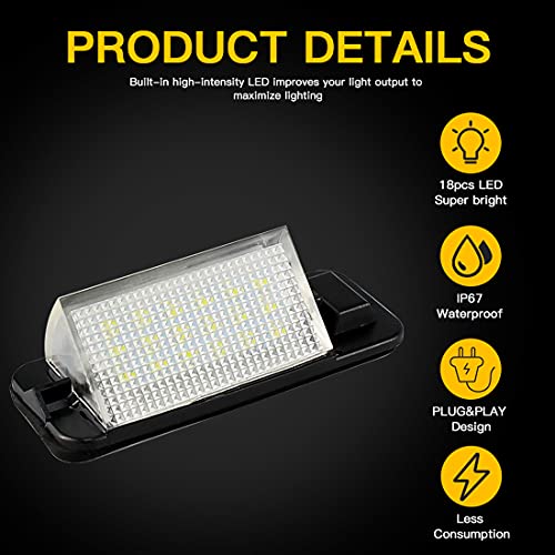 Alta luminosità: sostituzione e aggiornamento per la vecchia luce della targa posteriore , Dotata di luce LED bianca allo xeno super luminosa da 18 pezzi. Fornire una migliore visibilità per l'etichetta del numero un modo popolare per personalizzare l'illuminazione posteriore, migliorare l'identificazione del veicolo e migliorare il fattore di sicurezza durante la notte.
