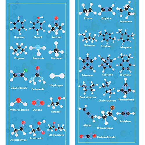 Scenari applicabili: il set di modelli molecolari può essere utilizzato per costruire una varietà di modelli di struttura molecolare comuni e leggermente complessi C, H, O, N, chimico-organici, adatti per l'uso didattico e in laboratorio.