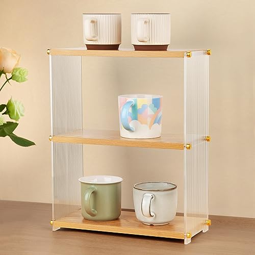 【MATERIALE ROBUSTO】Il pannello di legno dell'organizzatore da banco può contenere fino a 10 kg in un singolo strato e il robusto design del telaio in acrilico rende il ripiano più stabile.