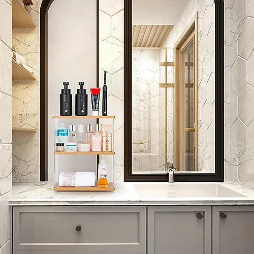 MOLEDINO Organizer da Appoggio in Legno e Acrilico a 3 Livelli per il Bagno, Scaffale per Credenza che può possono contenere profumi,Porta Spezie per la Cucina, Organizzatore da Bagno per il Bancone
