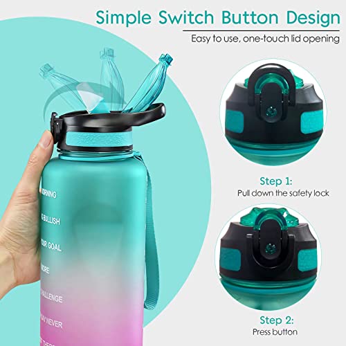 ⏲【1,5 L MOTIVATION TIME MARKER】: La nostra borraccia è un ottimo promemoria per tenere traccia dell'assunzione di acqua durante la giornata. Ben stampato con citazione motivazionale e indicatore di tempo è perfetto per tenere traccia di quanta acqua si beve in ogni momento della giornata, ricordando di rimanere idratati e di bere abbastanza durante il giorno. Un ottimo partner per raggiungere qualsiasi obiettivo di fitness, tra cui la perdita di peso, il controllo dell'appetito e così via.