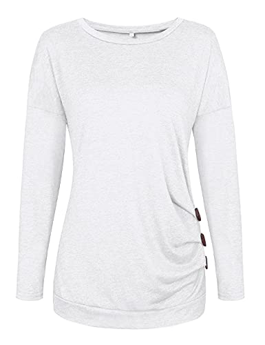 MOLERANI Magliette per Donna Manica Lunga Girocollo Tunica Camicetta Top Casual Tee Bianco XXL 50