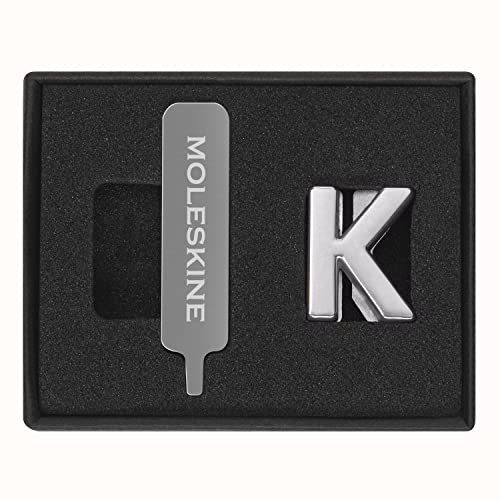 Moleskine Pin per Taccuino o Agenda Lettera K, Spilla Lettere, Personalizza la Chiusura con Elastico, Idee Regalo Personalizzato, Colore Argento