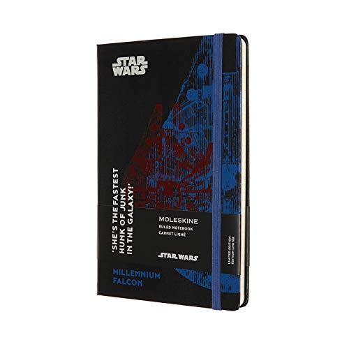Moleskine Star Wars Taccuino in Edizione Limitata, Notebook a Righe Millenium Falcon, Copertina Rigida con Grafica e Dettagli a Tema, Formato Large 13 x 21 cm, Nero, 240 Pagine