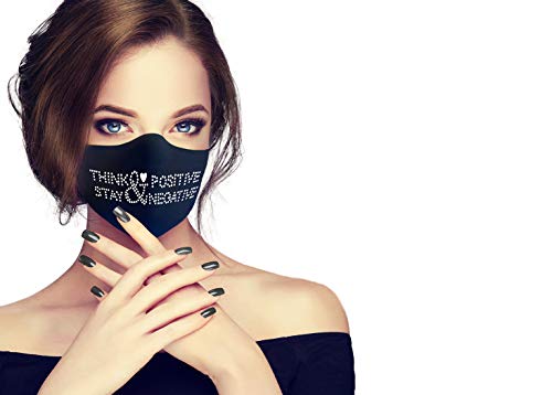 Moliabal N824 Mascherina Lavabile E Riutilizzabile Ad Uso Civile Da Donna - Taglia Unica - Copri Viso,Naso E Bocca,Con Strass Fantasia Think Positive & Stay Negative [1 pezzo] Made In Italy