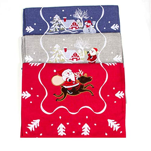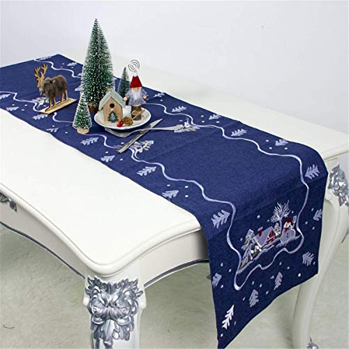 Molinter - Runner da tavola in stile natalizio, in cotone e lino, per sala da pranzo o cucina, decorativo, 180 x 35 cm (blu)