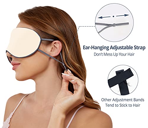3.【Design unico】 - Questa maschera di sonno pesa solo 0,04 libbre, rendendola facile e comoda da usare senza pressione sugli occhi. Le cinghie regolabili sospese uniche dell'orecchio sono facili da regolare e non strangoleranno le vostre orecchie, tanto meno aggroviglieranno i vostri capelli.