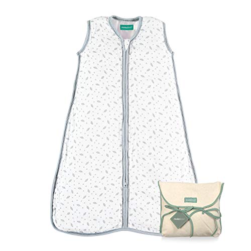 Molis&co. Sacco Nanna Imbottito per Neonati. 1.0 TOG. Da 0 mesi. Ideale per l'autunno e la Primavera (imbottita). Ultra-Morbido e Caldo. Stampa Grey Leaf. Unisex. Mussola Premium.