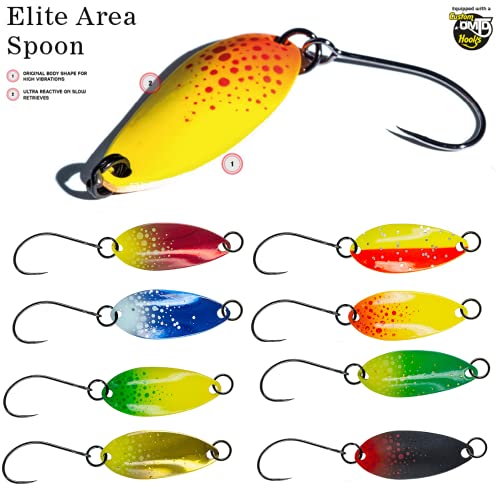 Ondulante specifico per l'utilizzo nel Trout Area Game. La particolare curvatura permette allo spoon di essere animato anche a basse velocità. Munito di amo barbless.