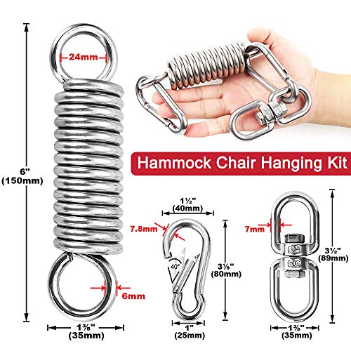 ✔️【Facile da Usare】: apri il moschettoni per fissarlo con molla altalena, quindi lega la tua poltrona sospesa con un gancio girevole. Il dispositivo di sospensione a molla può essere appeso facilmente in 10 secondi senza l'utilizzo di attrezzi o operazioni complicate. Con ganci su entrambe le estremità, la molla si collega facilmente alla tua sedia amaca / altalena sospesa con un gancio girevole. Il moschettone con apertura Active